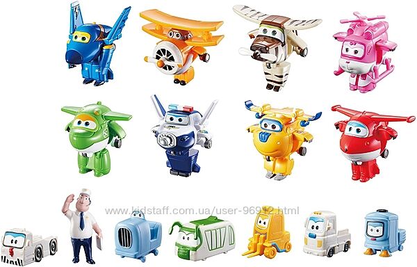 Комплектация: 15 персонажей (8 самолетиков-трансформеров, 6 машинок, фигурока Джимбо)