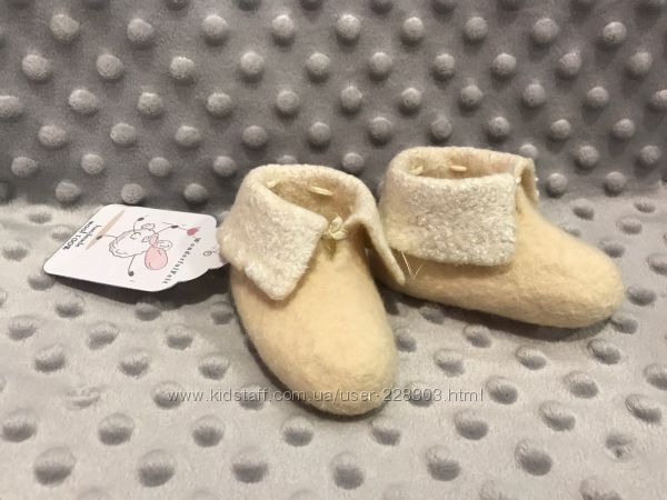 К тому же - пинетки из войлока не продуваются ветром, в них смело можно отправляться на прогулку в коляске. Ножкам малыша будет тепло и комфортно.