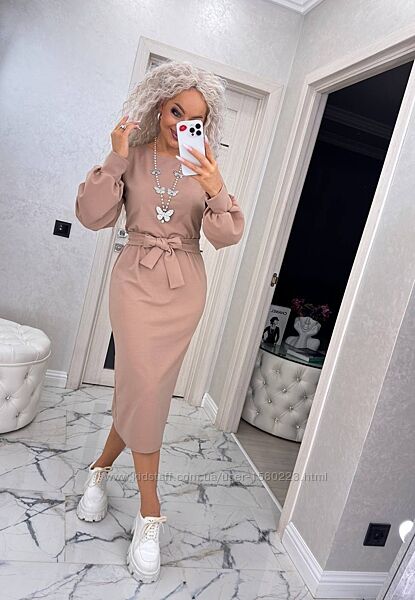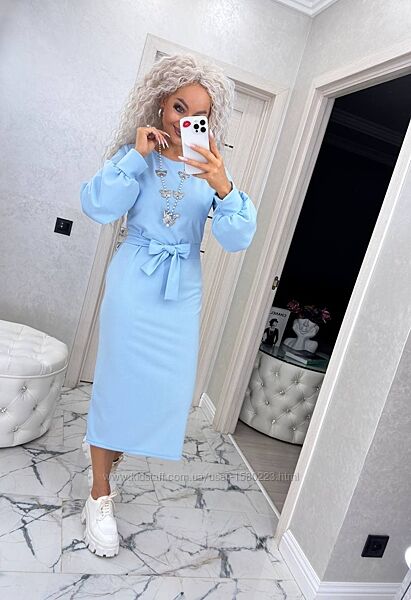 Подробное описание: Стильна подовжена сукня з поясом, рукав ліхтарик з широким манжетом
