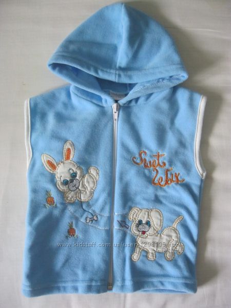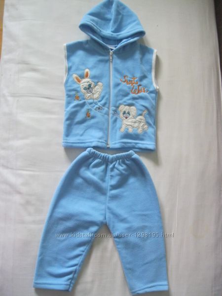 Продам костюм детский, в комплект входят штаны и жилет. В отличном состоянии, одевали один раз. Костюм универсальный, для мальчиков и девочек. Мягкая ткань типа флиса, подойдет на любое время года. Ткань не кусается и не раздражает кожу, очень приятна на ощупь. Длина штанов – 39см. Длина жилеточки – 31см. Костюм нежно-голубого цвета. Штаны однотонного голубого цвета, на резинке. Жилеточка на змейке и с капюшоном, проймы рукавов обшиты белым кантом, который отлично гармонирует с белой змейкой. Жилет украшен нашитыми зверушками – собачкой и зайчиком. Под жилоточку можно одеть любую кофточку, свитерок или гольфик. Костюм смотрится очень красиво. Ваш малыш будет самым нарядным и модным!! Смотрите другие мои объявления, много интересных оригинальных вещей по доступным ценам, всё отличного качества !