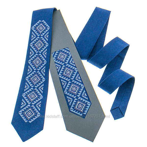 Класична вишита краватка №929 виготовлена з натурального льону синього кольору.Довжина виробу – 145см, ширина – 9см в найширшому місці.