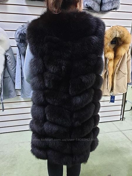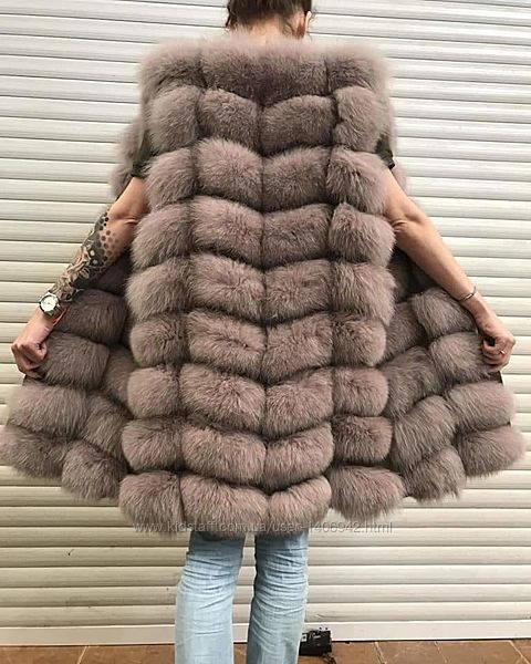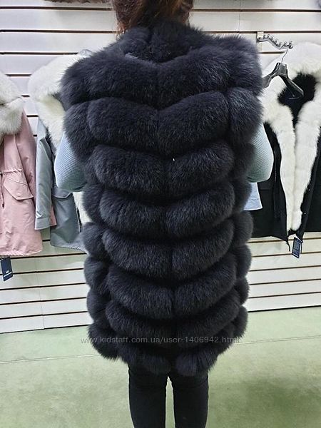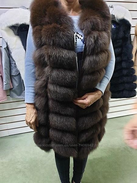 Шикарный жилет из меха финского песца 90 см. Жилет выполнен из отборных шкур, мех густой, плотный, имеет легкий натуральный блеск. Изделие застегивается на хорошо фиксируемые крючки. Имеет два боковых кармана Цвет - горький шоколад ( в наличии огромный ассортимент цветов и расцветок, палитру сброшу по запросуДлинна - 90см ( возможен вариант трансформера, сьем длинны до 75 см)