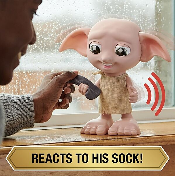Комплектація: інтерактивна іграшка Доббі, шкарпетка, батарейки.