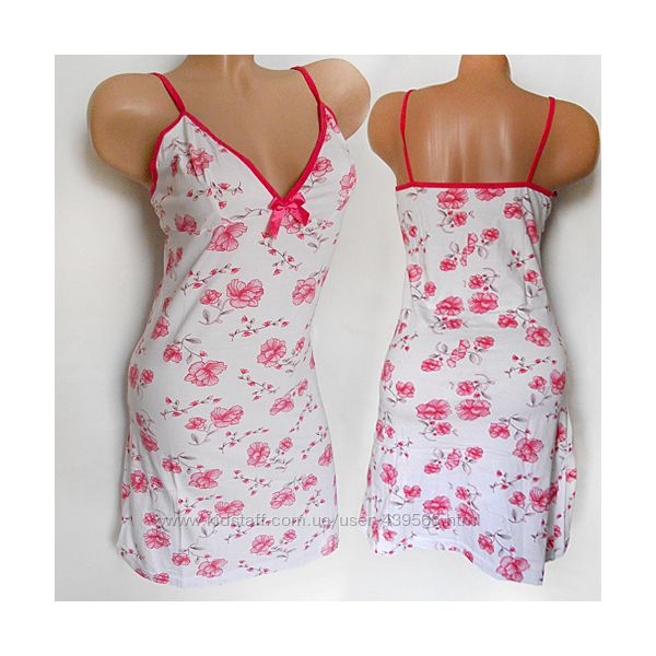 Женская ночная сорочка, туника на тонких бретелях. Состав: 70% хлопок, 30% полиэстер. Турция.
