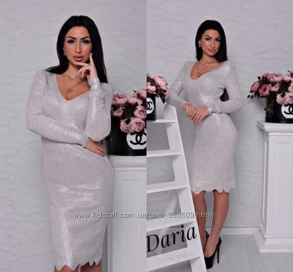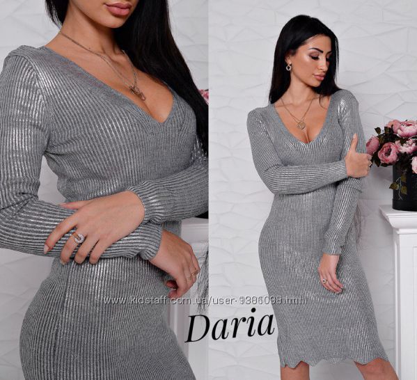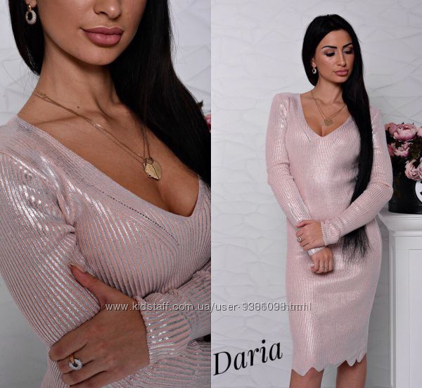 Платье с мерцающим напылением однотонные и в полоску. Мелкая машинная вязка,сверху покрыта мерцающим напылением.