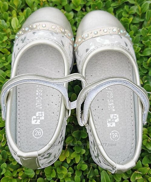 Нарядные туфельки для маленьких принцесс Jong Golf .Материал верха - искусственная кожа, внутри кожаная стелька с супинатором. Удобная застежка - липучка.На детской ножке смотрятся красиво и аккуратно. Лёгкие и удобные.