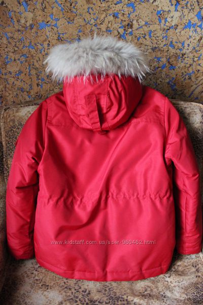 Куртка-пуховик Outventure с капюшоном. Состояние идеальное. Внутри встроенная регулирующая кулиса. Цвет красный. Водоотталкивающая, непромокаемая ткань. На натуральном пуху. На капюшоне натуральный мех. Указан размер 152:- плечи - 44 см;- длина рукава - 60 см;