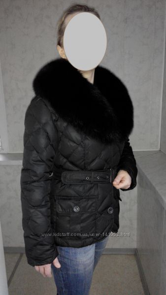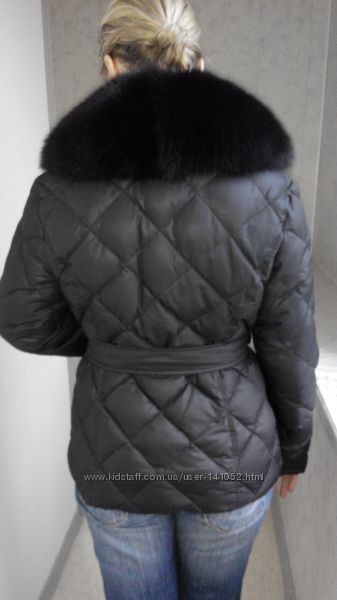 Легкая, теплая(80% пух, 20% перо),стильная стеганая куртка с шикарным крашенным в черный цвет воротником из песца. Воротник отстегивается.