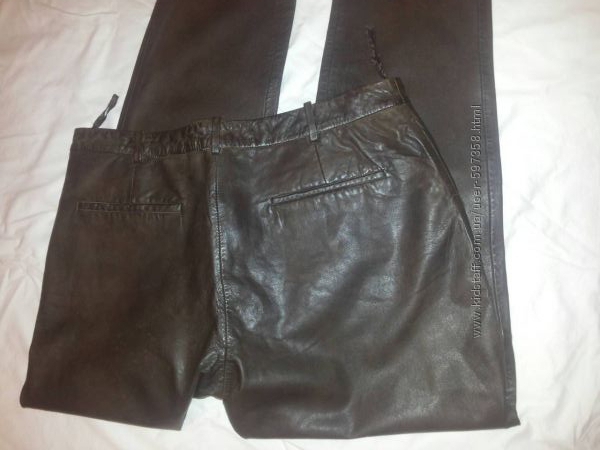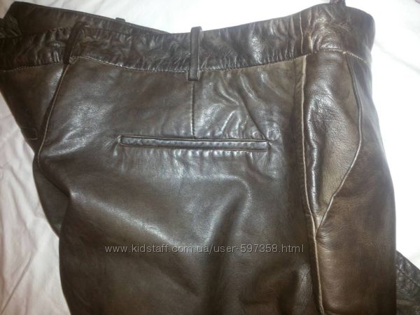 Брюки женские кожаные MANGO коричневые размер 42 соответствует 48 или 48+ украинскому размеру.Мягкая 100% натуральная овечья кожа.