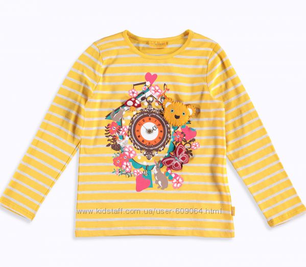 ФОТО 2 -Желтый Реглан в тонкую белую полоску и принтом-аппликацией -Игрушки - с обьемными деталями:Мишка,бабочка,грибочек, 100%хлопок