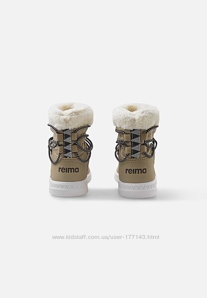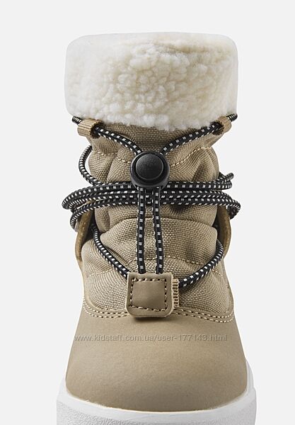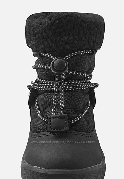 Вони виготовлені з водовідштовхуючого матеріалу Reimatec, а гнучка гумова підошва покращує стійкість. М´який синтетичний матеріал має водонепроникні і брудовідштовхуючі властивості, а підкладка з вовняної суміші з пухнастим ворсом дарує справжній затишок і тепло. Знімні устілки з фетру забезпечують додатковий комфорт, а безпечні та еластичні шнурки Reima допомагають легко регулювати посадку.