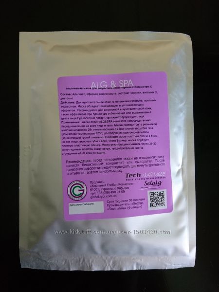 Подробное описание: Альгинатная маска для увлажнения кожи, детоксикации и хорошего лифтинга ALG