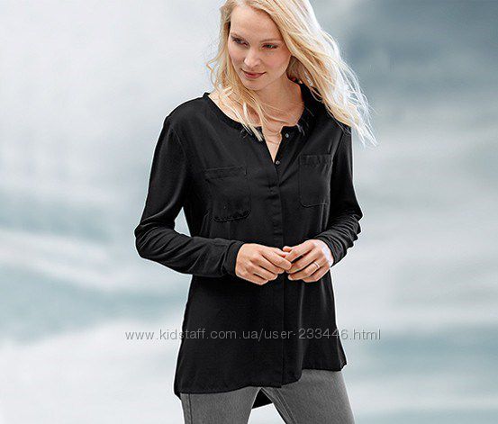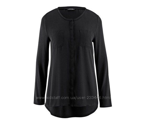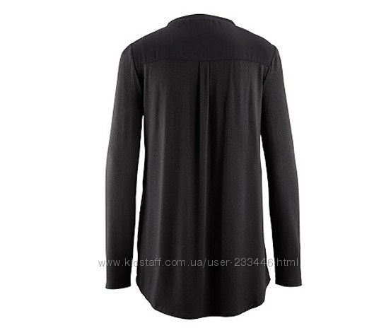 Красивая, стильная блуза Перед выполнен из плотного шифона (светится немного) Рукава и спинка мягусенькая трикотажная вискоза (Lenzing® Viscose) Очень интересная моделька, спинка удлиненная, впереди по всей длине скрытые пуговицы
