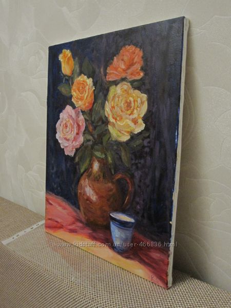 Продаю свою работу картина Троянди на синьому оксамиті,холст на деревянном подрамнике, масляные краски, размер картины 40 на 50 см. Картина без оформления в раму, оформить можно самостоятельно с учетом собственного вкуса и особенностей интерьера. Картина послужит прекрасным подарком или замечательно украсит ваш интерьер!)Как образец картину в раме можно посмотреть по ссылке: