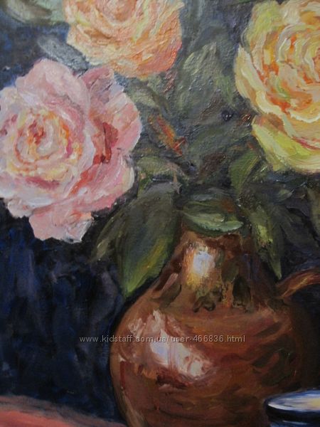 Подробное описание: Картина Розы на синем бархате, холст, масло, 40 на 50 см