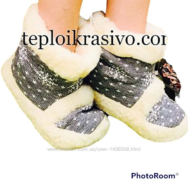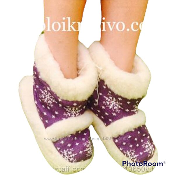 Подробное описание: Тапочки Чуни из овчины вязаные
