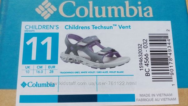 В наличии новые сандалии Columbia Youth Techsun Vent 3 Strap Water Sandal 11 или 28 евроразмер. Оригинал с Америки.По стельке от края до края 18,5 см. На ногу 16-17 см.