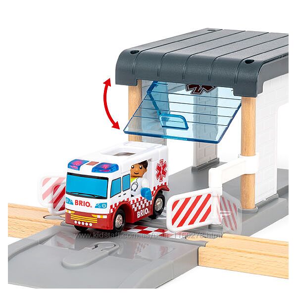 Набір Brio 36025 порадує Вашу дитину своїми функціональними можливостями та допоможе їй створювати захоплюючі ігрові історії на тему рятувальних операцій. Цей набір може бути поєднаним з будь-якими залізницями Brio та з аналогічними системами інших виробників: Hape, Lillabo (Ikea), Melissa and Dough, Eichhorn, BigJigs, ELC, Woodyland, Playtive та ін. Додаткові елементи дозволять залучити уяву та створювати нові цікаві маршрути для поїздів та техніки Brio, щоб задоволення від гри було ще більшим.З цим набором ви зможете зібрати команду рятувальників для усунення будь-якої надзвичайної ситуації. Пожежники прямують до місця пожежі на пожежному поїзді та гелікоптері. По дорозі до них приєднується допомога з поліцейським мотоциклом, який від’їжджає від поліцейської дільниці, а швидка допомога їде з миготливими маячками та сиренами. Коли день врятовано, команда зупиняється біля червоної вантажної станції для поповнення запасів води, щоб бути готовими до наступної