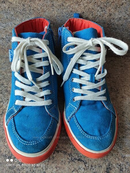 Подробное описание: Крутые яркие кеды замша и текстиль Clarks оригинал 21, 5 см