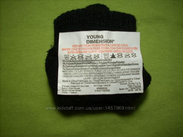 Перчатки демисезонные Young Dimension-Primark, в идеальном состоянии (состояние новых !) подойдут как мальчикам так и девочкам. На возраст 2-5лет. Очень хорошо тянутся. Перчатки черного цвета. Можно носить даже теплой зимой. Сын одел один раз, и забыли за них. Носил другие перчатки. Длина вся 12см., в т.ч. резинка 3см. Состав : 78% akrylic / 19% polyester / 2% elastodiene / 1% elastane. Перешлю Укрпочтой (+11грн.) Цена без торга ! Пишите в личку, отвечу на все вопросы.