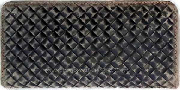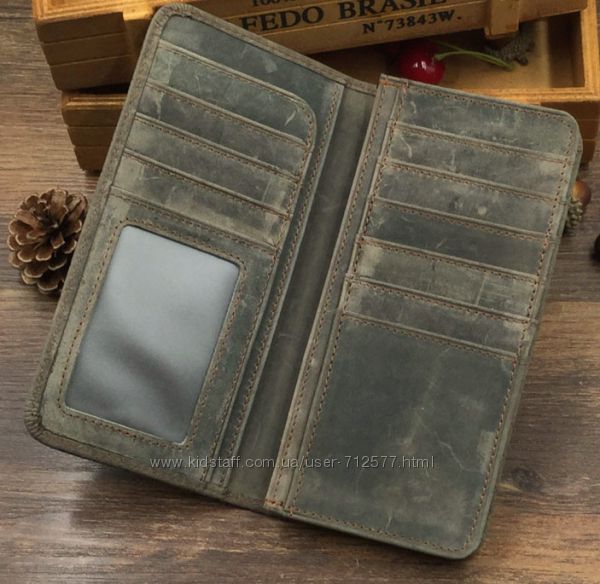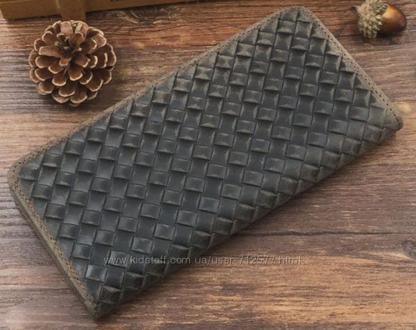 Эксклюзивный практичный вместительный кошелёк из плотной натуральной кожи crazy horse с восковой пропиткой, тисненый под плетение, с эффектом потертости. Размер 18 * 9 * 2 см. Цвет хаки, с каждой стороны по два отделения для купюр/чеков/квитанцийStyle: Vintage