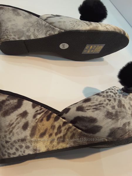Модель на помірній танкетці леопардового забарвлення із закритим носком та з чарівними помпончиками на шкіряній тасьмі від відомого італійського бренду Yamamay підкорюють з першого погляду!