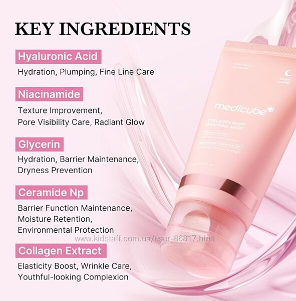 На відміну від інших масок-плівок, Medicube Collagen Night Wrapping Mask не рветься під час зняття і легко видаляється одним рухом, залишаючи шкіру помітно оновленою і свіжою.