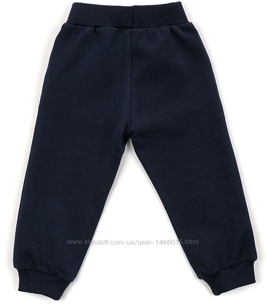 Затишні штани темно - синього кольору на манжетах, з двома прорізними кишенями. Еластичний пояс і манжети, в подвійну трикотажну «гумку», забезпечать затишок і оптимальну посадку по фігурі. Пояс додатково посилений вставленою всередину широкою «гумкою».