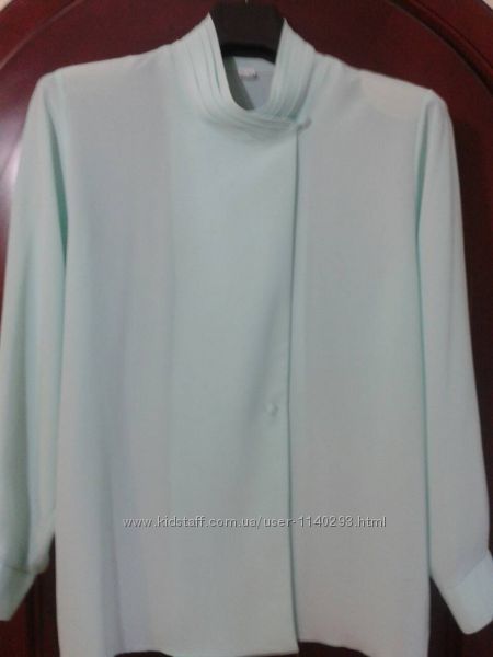 Продаю красивую женскую блузку нежно-салатового цвета. Оригинальная модель будет к месту как в офисе, так и в торжество. Размер 40 европейский, на наш 48-50. Замеры: длина 65 см., полуокружность груди 55 см., длина рукава от плеча 57 см., плечо 12,5 см. Искусственный шелк. Состояние новой вещи!Другие объявления продавца