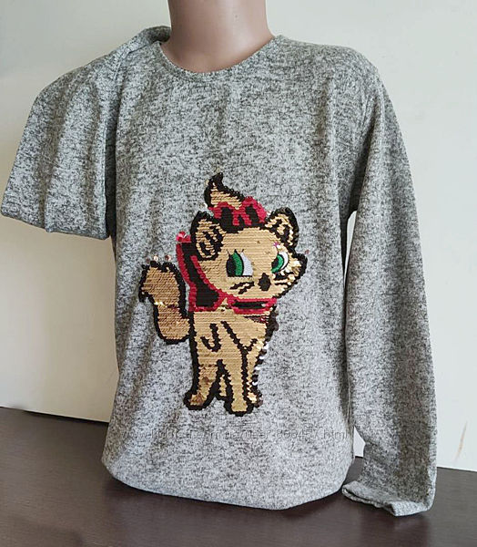 Туника для девочки , Кошечка пайетки перевертыш. Материал хлопок с напылением ангоры. Ангора софт. Мягкая, приятная к телу. На спинке удлененная