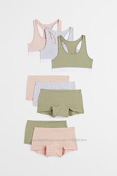 Фото 2-4: Трусики та топи на дівчинку бренду h&m. В наявності на зріст 158/164. Вартість одних трусиків 80грн, одного топа 150грн. (Залишились тільки хакі і трусики і топи)Фото 5-6 комплект трусиків на дівчинку h&m. В наявності на зріст 146/152. Вартість набору (7шт в упаковці) - 450грн