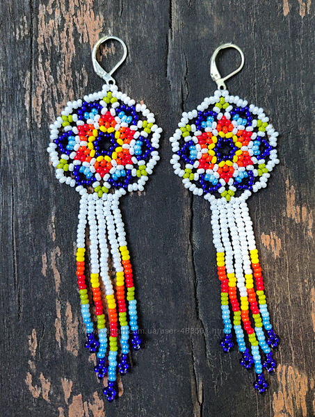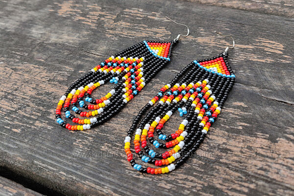 Длинные серьги из бисера ручной работы в этно-стиле Бисер: Чехия.Предложения Premium магазинов