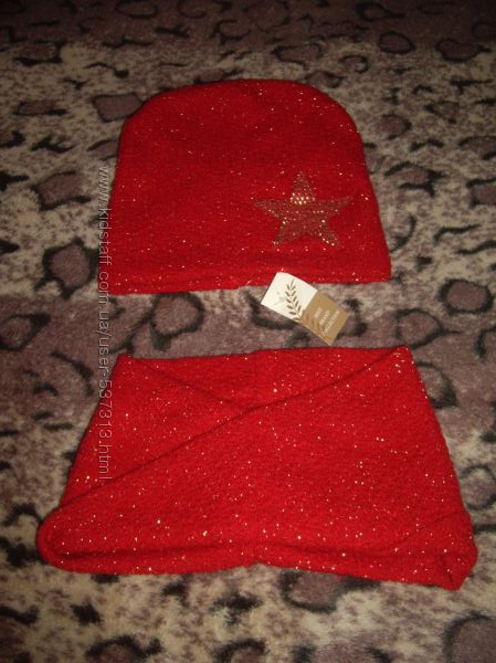 Фото 1-4 Красный комплект с люриксом на окружность головушки 46-50см. Шапочка украшена звездочкой. Ткань буклированная на флисе. Замеры шапочки: высота - 21см, полу обхват - 23см, тянется не сильно. Цена 100 гривен. Возврат не предусмотрен.
