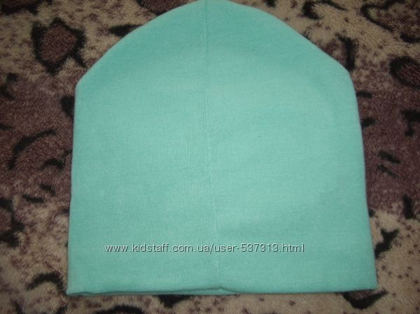 Фото 7-8 Деми шапочка машинная вязка из вискозы на трикотажной основе. Нежный мятный, очень красивый цвет. На объем головы 53-57 см. По голове, хорошая глубина, чуть укладывается сзади. Полу обхват 24 см, тянется отлично. высота - 24 см. Цена 100 гривен. Возврат не предусмотрен.