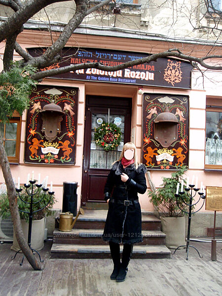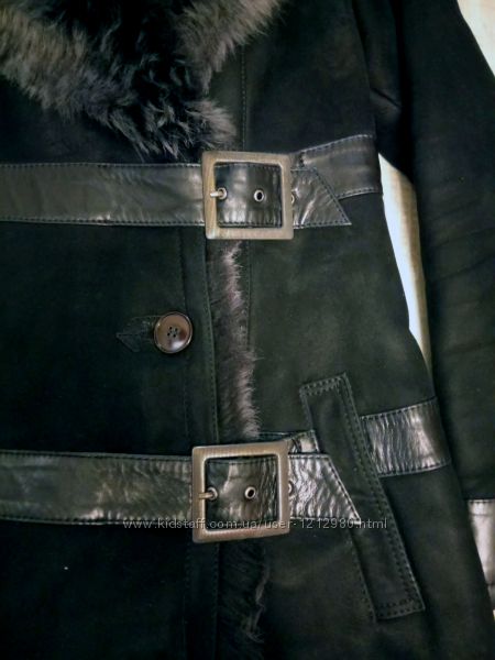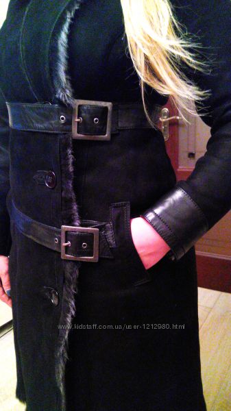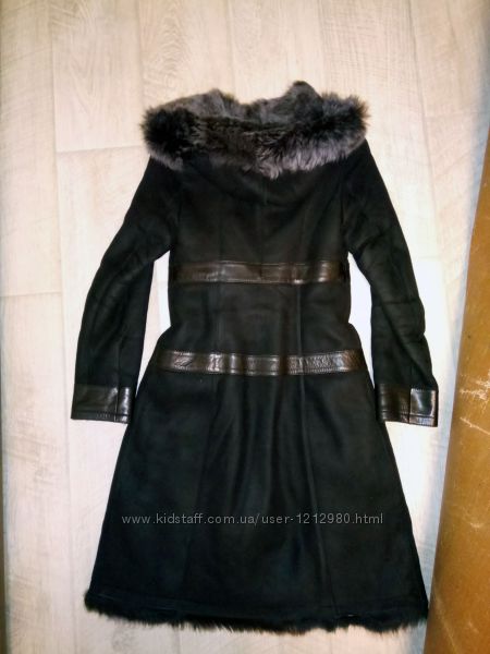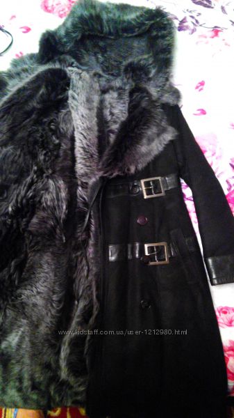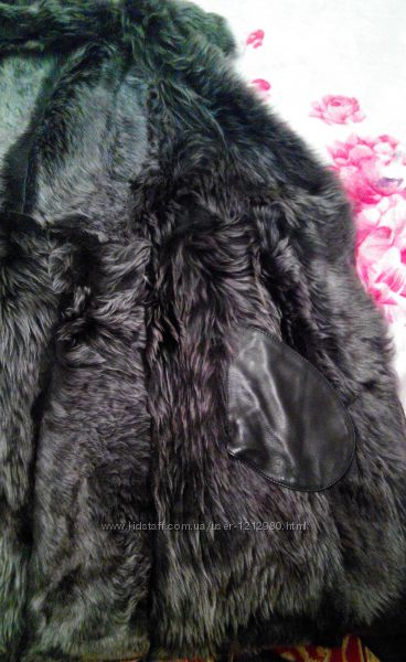 Подробное описание: Натуральная дубленка с капюшоном-M-L, кожанные вставки, длинный ворс