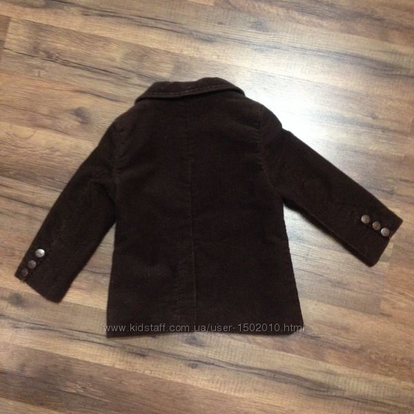 Вельветовый пиджак для Вашего стильного малыша в состоянии абсолютно новой вещи!Производитель Бангладеш,состав 46% хлопок+54% полиэстер,на бирке указан рост 92,но лучше смотрите реальные замеры:длина по спине 40см,