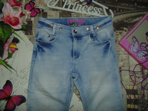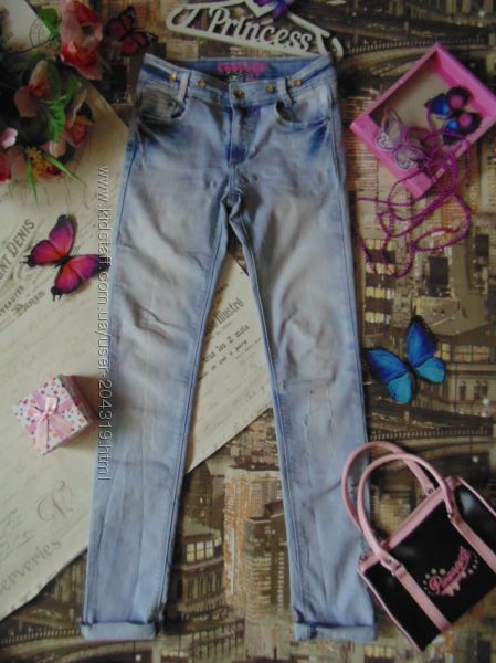 Модные высветленные джинсы- скинни Coolcat на 14 лет,рост 164 см,декорированы потёртостями75%коттон,22%полиэстер,3%эластан(стрейч)