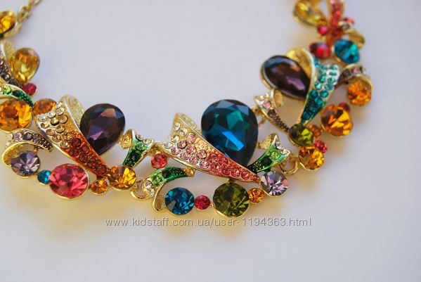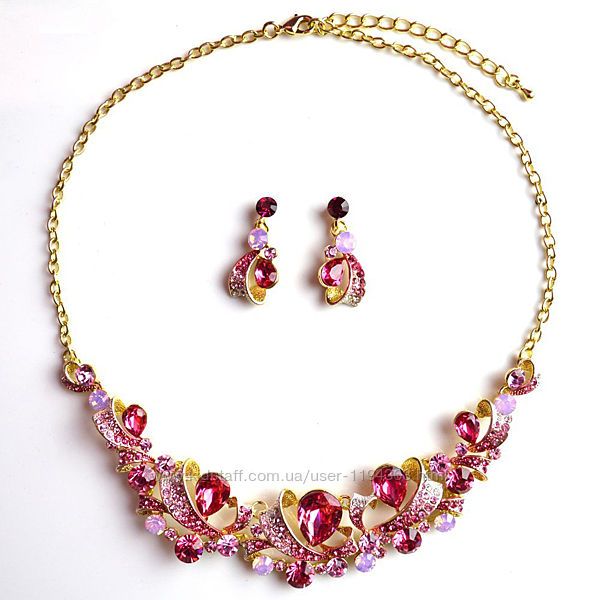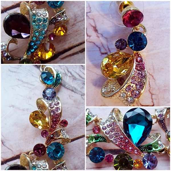 Набор выполнен из гипоаллергенного цинкового сплава с цирконами Stellux™ (Swarovski AG). Яркий, новый. Подойдет под любой наряд. Серьги 3,5 х 2 см. Колье: 45 х 7 см.