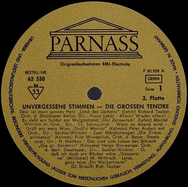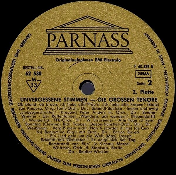 Various – UnvergesseneStimmen (Die Grossen Tenöre)Лейбл: Parnass – 62 530,