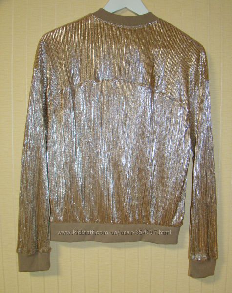 Куртка Zara (размер 46 (M))Женская. Бомбер. Ткань золотое гофре, горловина, манжеты из плотной резинки. Состав 100% полиэстер.