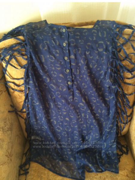 4. Пляжная полупрозрачная нежная воздушная туничка с бахромой по бокам на р. 34-38, довольно просторная, бу, в отл сост, цвет-синий с оливковым, в отл сост. Длина 70см, ширина между подмышками ок 54см .