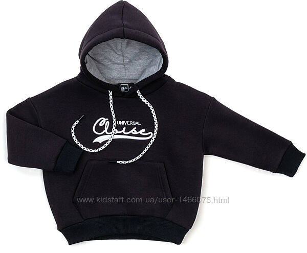 Манжети на рукавах і низ кофти виконані з якісної подвійної трикотажної «гумки». Капюшон на трикотажній підкладці, з функціонуючим круглим шнурком по краю.