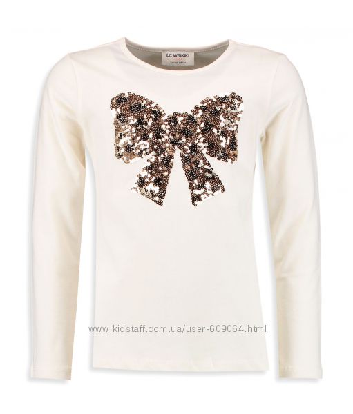 ФОТО 1-2 - Белый (молочный) Реглан с большим бантом из Золотых паеток разных оттенков, хлопок 98% ,элластан 2%