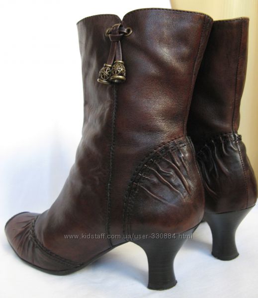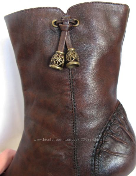 590. Изящные оригинальные демисезонные ботиночки немецкого бренда "5-th Avenue" в отличном состоянии без недостатков.Материал верха - МЯГЧАЙШАЯ натуральная кожа коричневого цвета с мраморными разводами, на фото выражены более контрастно, в жизни окрас практически равномерный. Декорированы оригинальной кожаной драпировкой, на голенище металлические висюльки