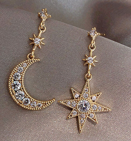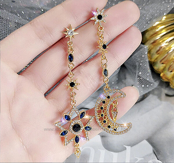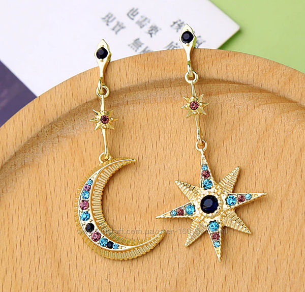 Подробное описание: Новинка шикарные ассиметричные серьги солнце и луна, разные модели