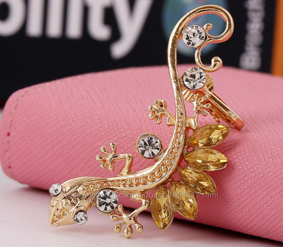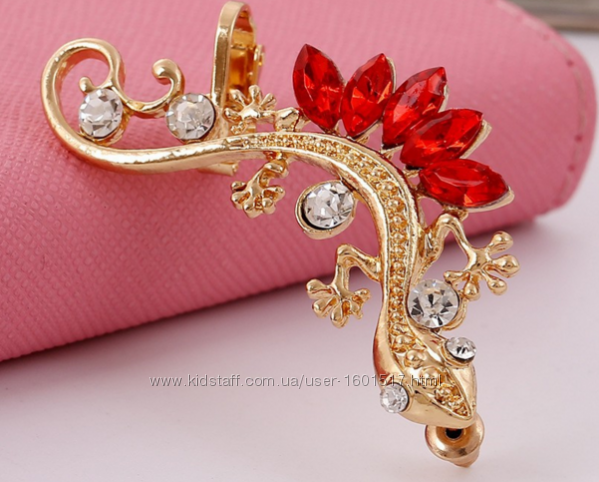 С проколом,на левое ушко,под золото,с австрийскими кристаллами.Крепится вверху клипсой,внизу-гвоздиком.В наличии три цвета : огненно-красный,королевский синий,цвет шампанского.Предложения Premium магазинов