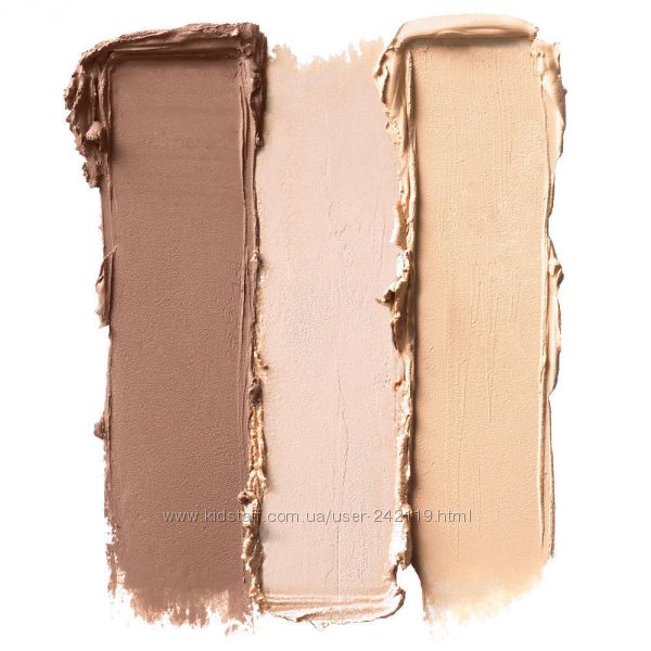 Компактная палетка состоит из кремового контура, осветления и хайлайтера. Комфортная текстура средств очень легко наносится и растушевывается на коже любого типа.