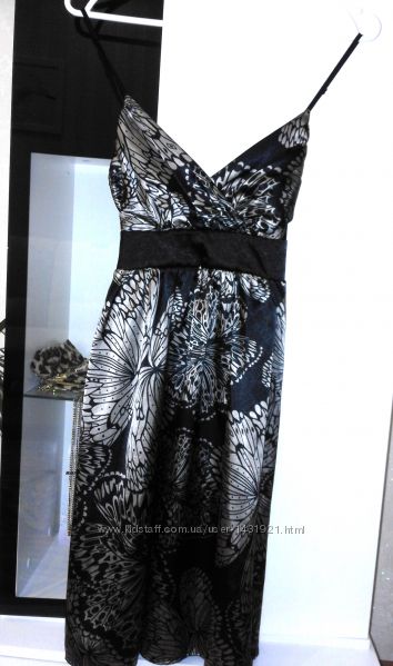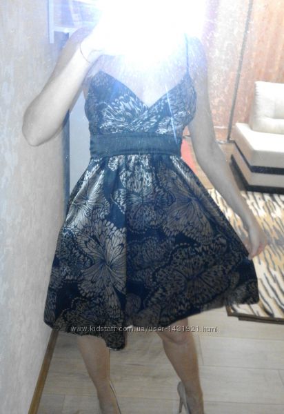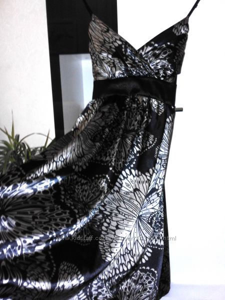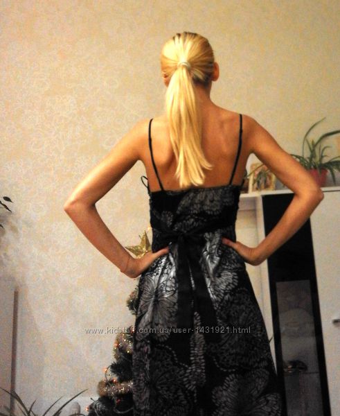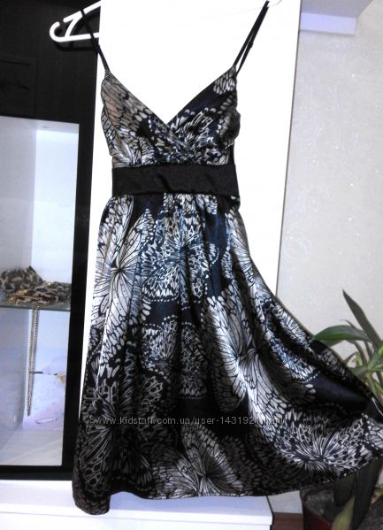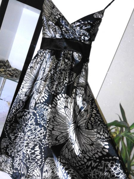 Продам шикарное черное платье с красивым принтом и атласным блеском. Платье фирменное бренд Miso. Очень качественная и красивая ткань, что то среднее между шелком и атласом. Бретельки регулируются. На груди вырез идет с запахом. Сзади завязывается поясом. Красивый отлив и необычайный рисунок придает ему роскошный и нарядный вид.Размер 8 S 42-44.