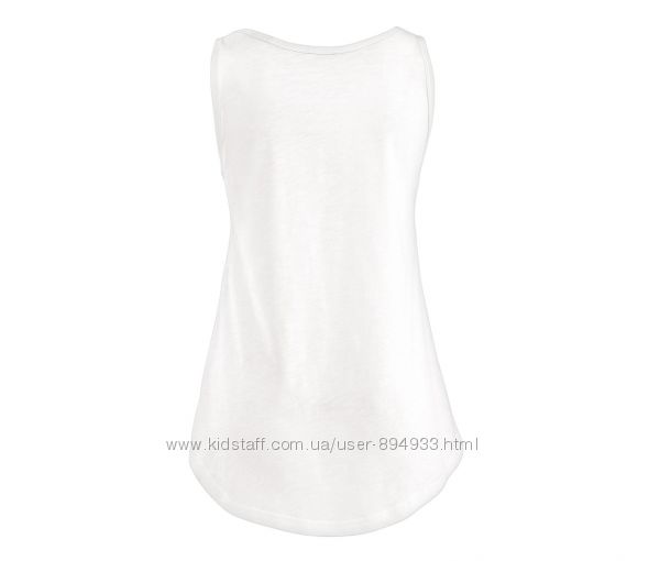 Комбинированная маечка-топ из нежной вискозы и хлопка от Tchibo, Стильная и модная модель с круглым вырезом горловины и асимметричной линией низа - удлиненной спинкой, что добавляет изюминку этой базовой модели.Украшение модели - использование двух тканей в пошиве, что добавляет ей оригинальности: перед - шелковистая, приятная на ощупь вискоза. Этот струящийся по телу материал отлично пропускает воздух, позволяет телу дышать и охлаждает его в жаркие летние дни. Вискоза не накапливает статическое электричество, поэтому одежда не "прилипает" к телу. Спинка - джерси хлопок
