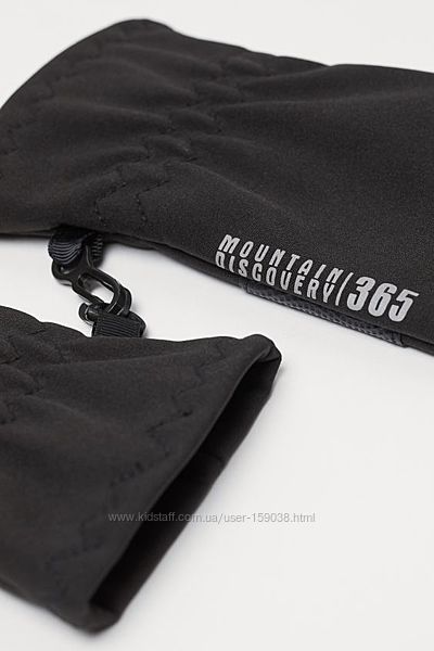 Перчатки из ветрозащитной, водостойкой, функциональной ткани, усиленными участками ладоней и светоотражающими деталями. На запястьях эластичные резинки+затяжка с петлей для плотной регулировки по руке. Внутри перчатки трикотажный манжет. Толстый слой утеплителя.